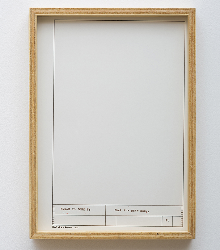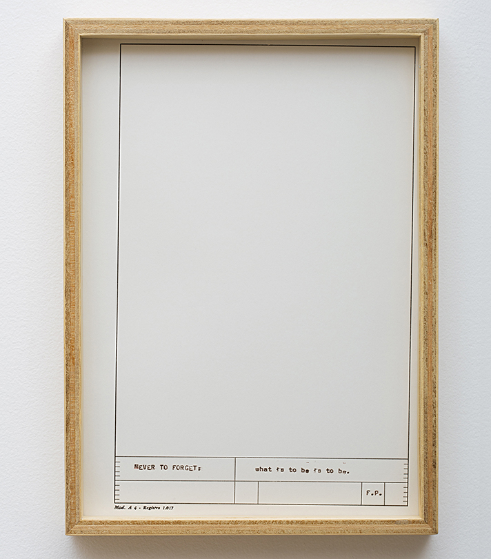 Lemas, metas e filosofias foram datilografadas em um antigo papel formulário com um defeito de fabricação: foi impresso desalinhado.